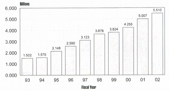 Not to be outdone, the U.S. Immigration and Naturalization Service constantly keeps upping the ante for keeping America’s borders secure with a 360% budget increase from 1993 – 2001: